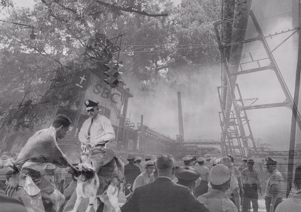 Das Schwarzweiß der Collage verstärkt die dokumentarische Anmutung und verweigert jede nostalgische Verklärung. Die Überlagerungstechnik erzeugt eine zeitliche Verdichtung, die die Frage aufwirft, ob Birmingham – ob der amerikanische Süden – diese Geschichte jemals aufgearbeitet hat.