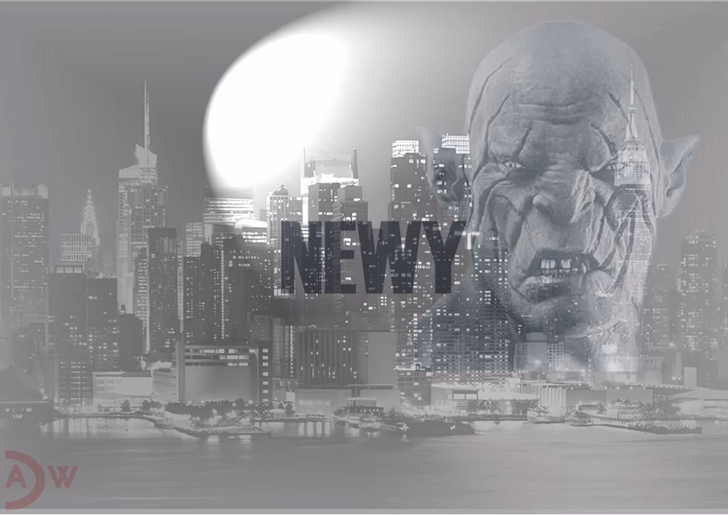Der zentrale visuelle Mechanismus des Werks liegt in der Doppelcodierung: Der Ork und die typografische Intervention „NEWY“ verschmelzen zu einer Chiffre für „New York“, wobei die Kreatur selbst zum lebendigen Buchstaben wird, zum fleischgewordenen Signifikanten. Diese Transformation evoziert Adornos und Horkheimers Dialektik der Aufklärung – die Rückkehr des Verdrängten, des Barbarischen, im Herzen der zivilisatorischen Moderne. Der Ork, bei Tolkien Sinnbild korrumpierter Schöpfung und industrialisierter Gewalt, materialisiert sich hier als Wiedergänger im Zentrum des globalen Kapitalismus.