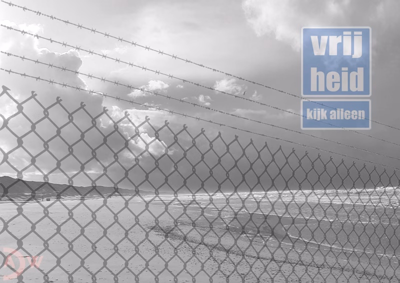 „Kijk alleen, maak er geen gebruik van (ausgesperrt)“ – „Ausgesperrt“ symbolisiert den fehlenden Zugang zu den schönen Dingen des Lebens – ein Zugang, der vielen Menschen in unseren Gesellschaften verwehrt bleibt, weil sie arm und auf staatliche Unterstützung angewiesen sind. Gleichzeitig bedeutet dieses „Ausgesperrtsein“ auch ein „Eingesperrtsein“ – gefangen in ihrer Armut, ohne die Freiheit zur Teilhabe. Ihnen bleibt nur, sich die guten Dinge des Lebens medial „anzueignen“ und buchstäblich eine Scheinfreiheit zu „genießen“.