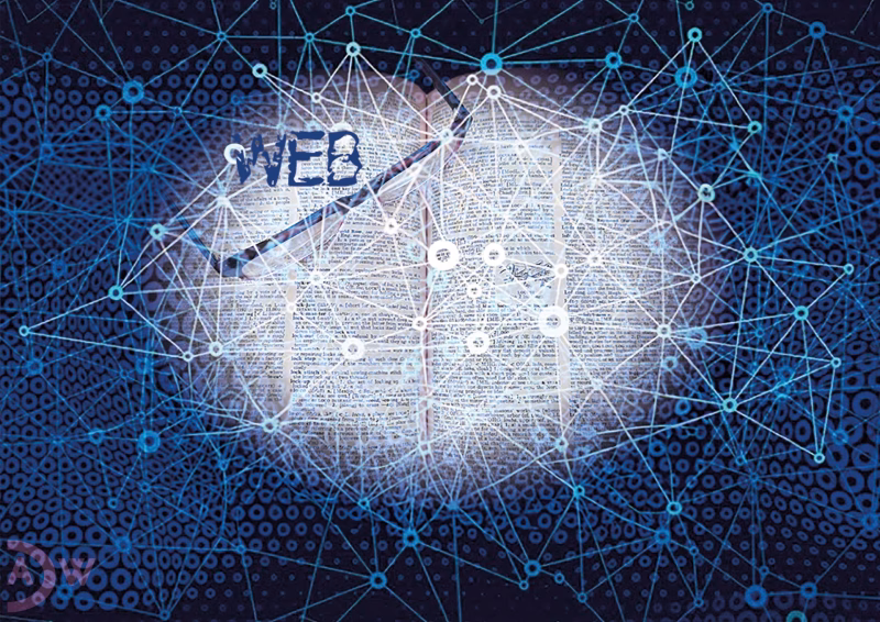 „STER’S“ – ist ein „abgekürzter“ Bildtitel, der in Kombination mit dem Wortobjekt „WEB“ im Bild als dessen Anhang das zugrundeliegende Thema bildet. Vordergründig scheint es um den digitalen Kosmos des (weltweiten) Web zu gehen, doch darüber hinaus verweisen die aus dem Netz dezent hervorschimmernden Wörterbuchseiten des „Webster’s New World Dictionary of the American Language“ darauf, dass es immer noch alternative analoge Lebens-/Leseformen gibt – selbst für mich. Hier haben wir das zweite Thema. Das mag antiquiert erscheinen, es gibt beispielsweise „DeepL“, einen leistungsstarken Online-Übersetzer und andere Online-Wörterbücher, aber ich ziehe es vor, meine College-Ausgabe von 1980 mit ihrer Fülle an Amerikanismen und detaillierten Etymologien im wahrsten Sinne des Wortes in Händen zu halten.